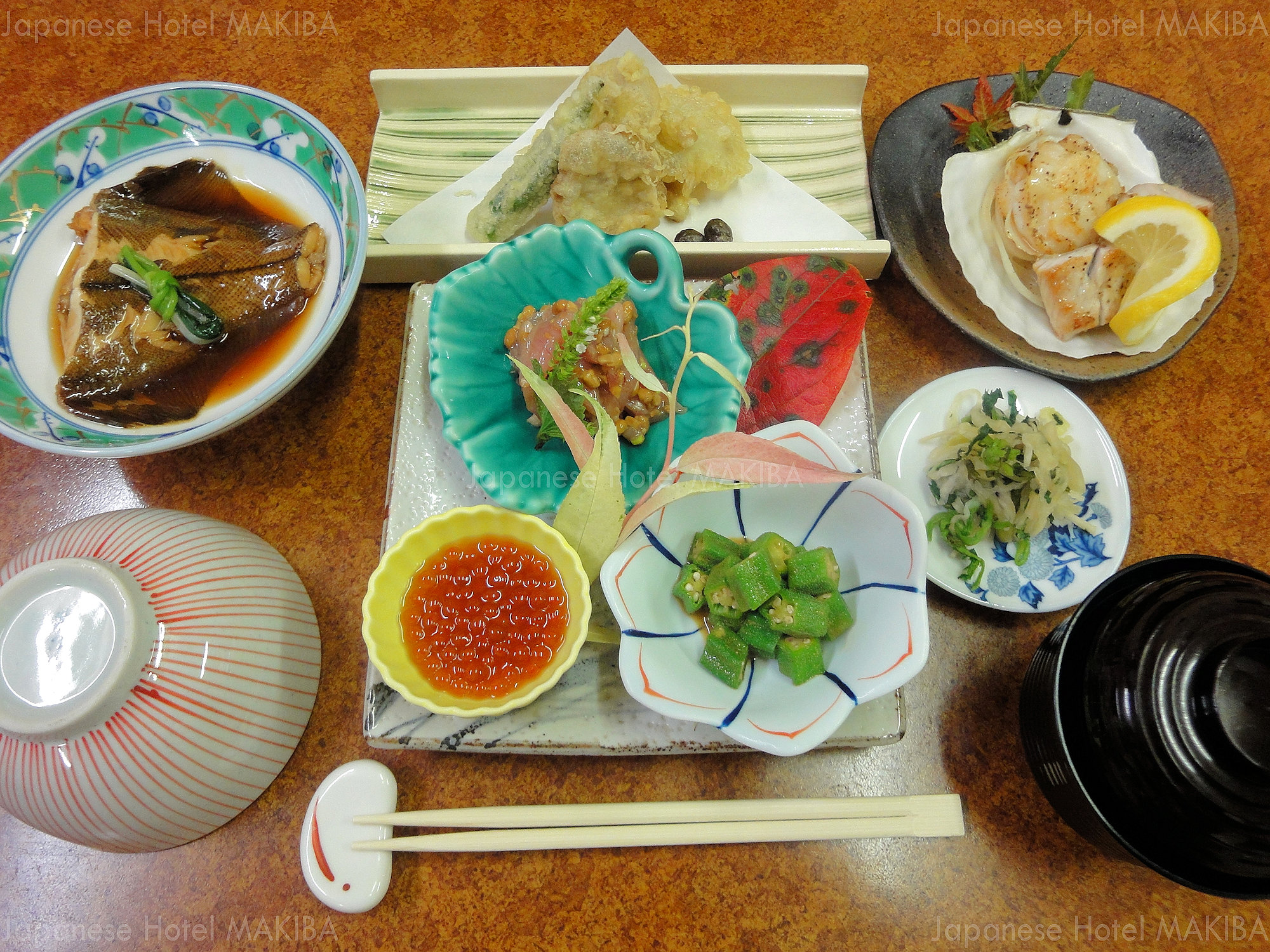 ・前菜盛り合わせ ・お造り ・煮物 ・揚物 ・食事 ・甘味