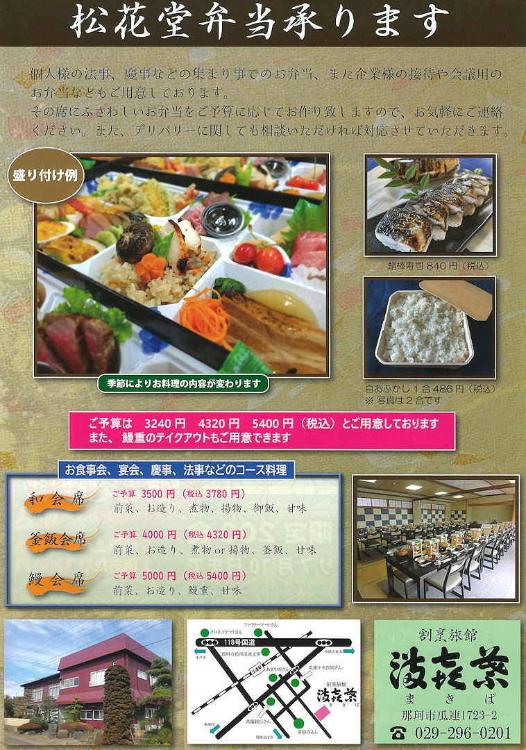 また企業様の接待や会議用のお弁当などもご用意しております。