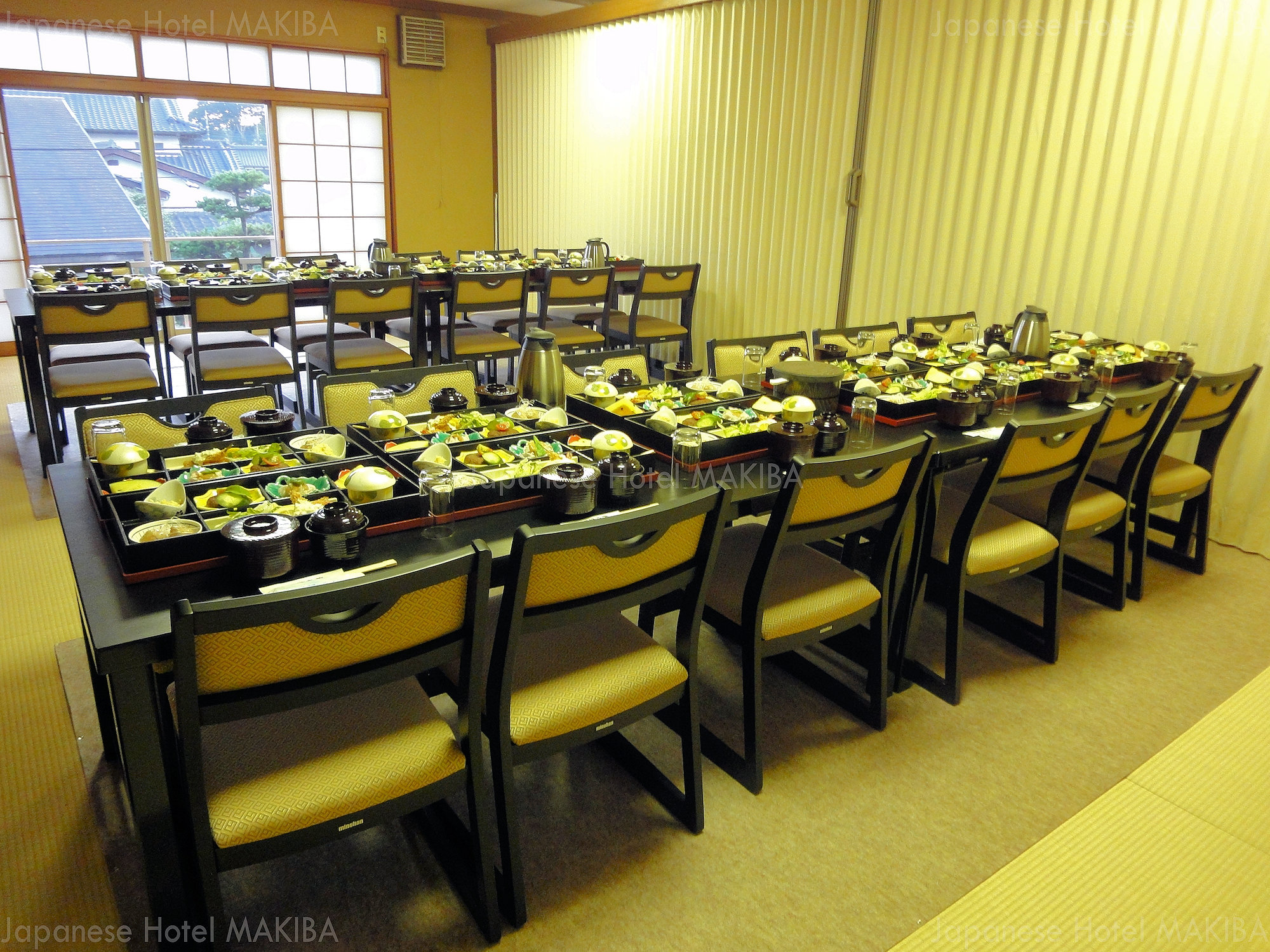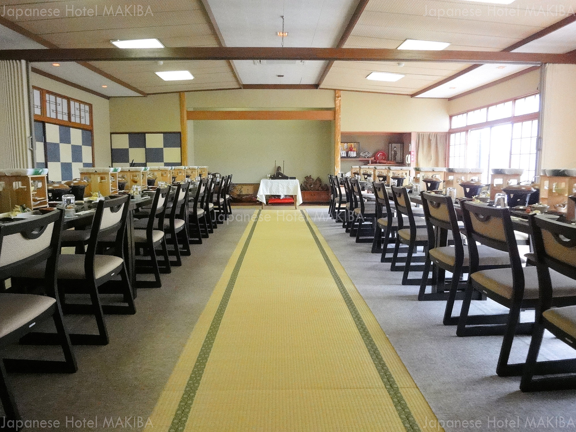 大広間(50畳)ご年配の方にも長時間ゆっくりくつろいで頂けますよう、お座敷テーブルと椅子を完備しております。